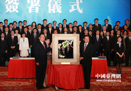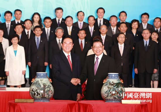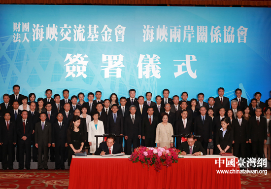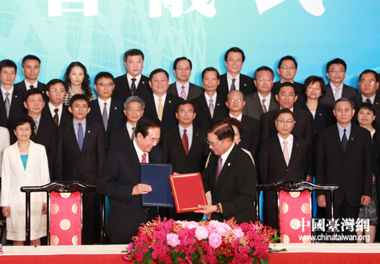 8月9日下午,海峡两岸关系协会会长陈云林与台湾海峡交流基金会董事长江丙坤在台北共同签署了《海峡两岸投资保护和促进协议》与《海峡两岸海关合作协议》。(中国台湾网 田云鹏 摄)